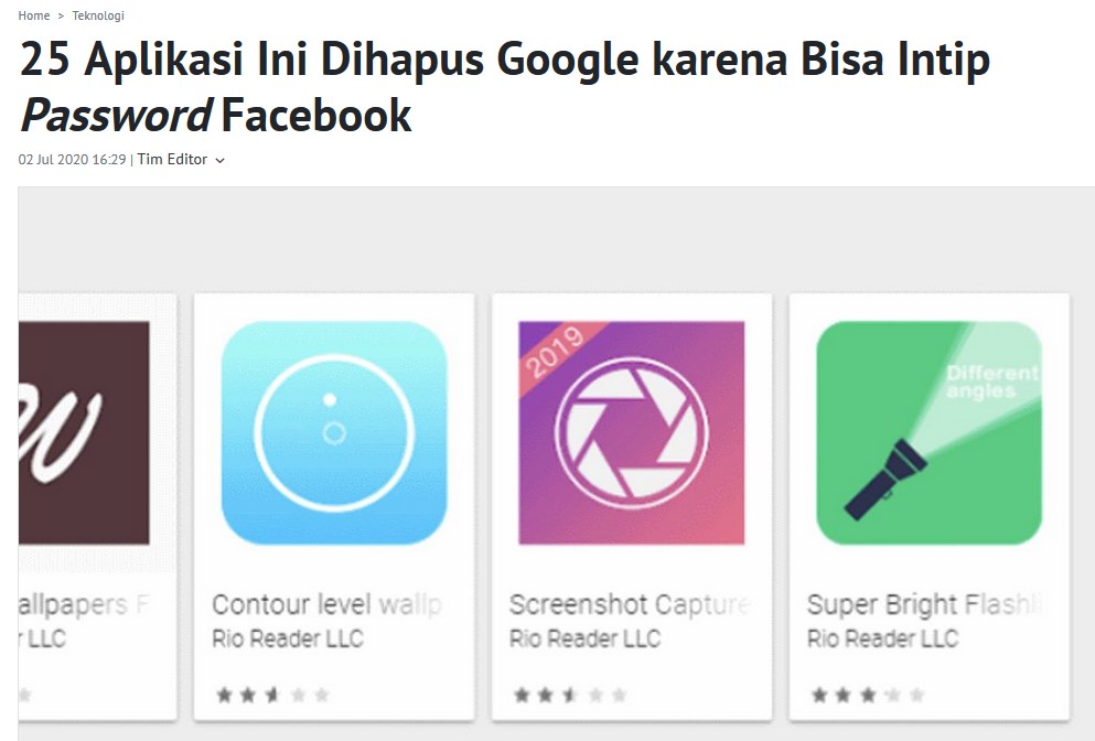 Kayaknya nitizen dunia dan tentunya termasuk di Indonesia, kali ini harus berterima kasih banget pada Google. Di akhir April 2020, nitizen net Indonesia heboh dengan issu rawannya diretas akun email yang dipakai register di beberapa platform market place. Kini, google merilis 25 platform aplikasi di play store yang telah dihapus oleh google karena punya fitur yang mampu membaca user name dan passwor akun facebook penggunnanya. 25 platform yang telah dihapus tersebut sebagaimana dirilis oleh Voice of Indonesia, pada Rabu, 2 Juli 2020.